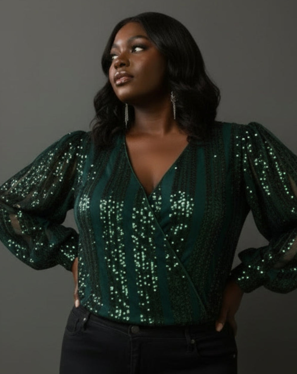 ShopThe Outfit of the Month features a stunning shimmering sheer shawl paired perfectly with a beige tank top and matching pants.This elegant set is ideal for the holidays and any special occasion. Click on shop button to view it.