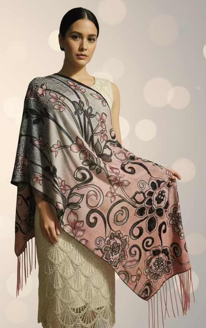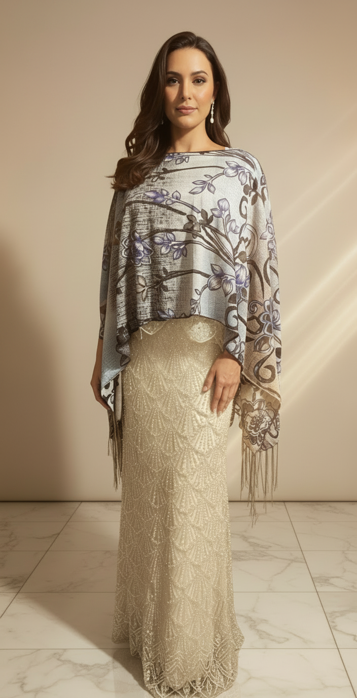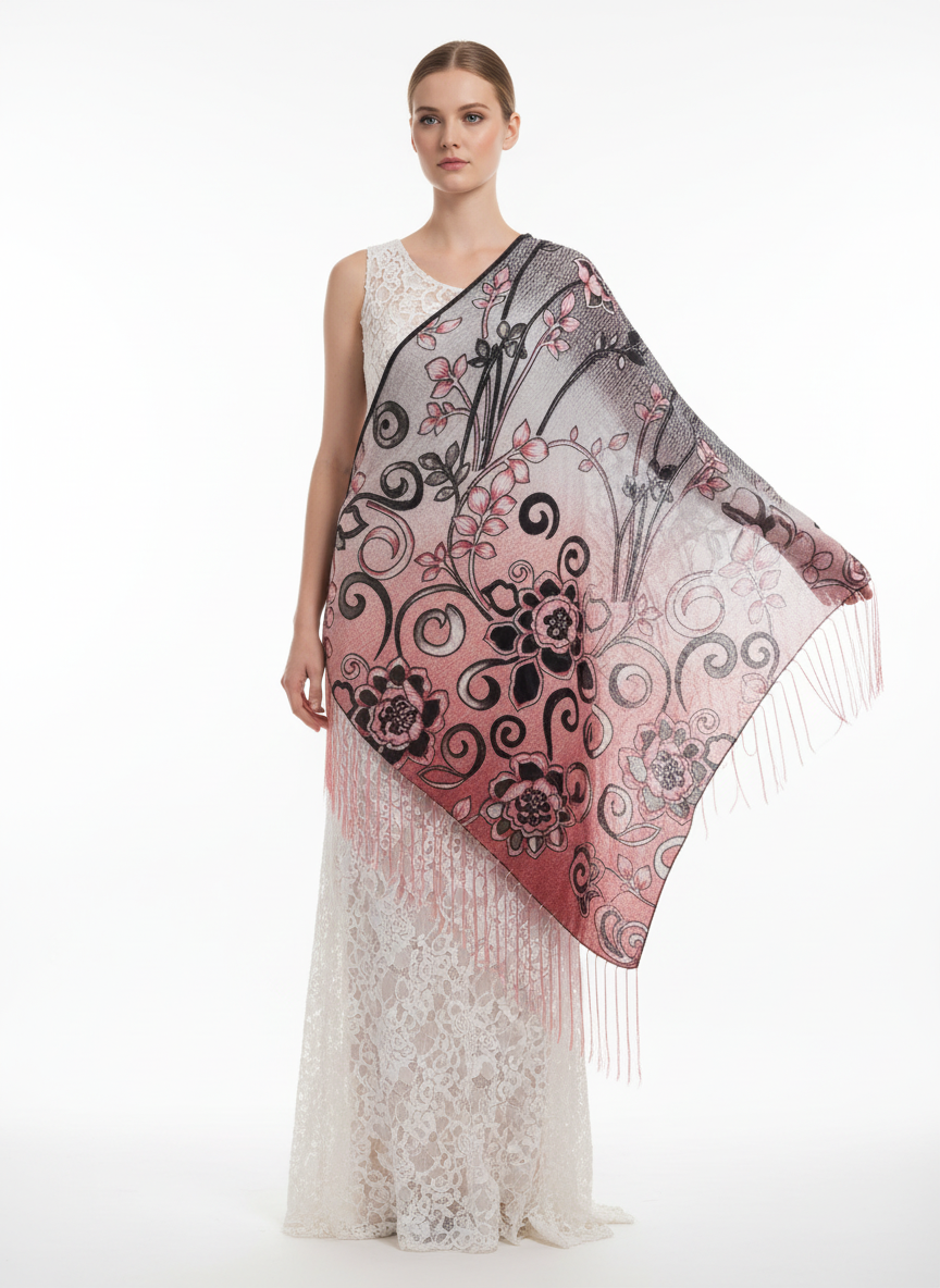 As a lightweight, flowy multi-way shawl, "My Own Style" adds an elegant touch to any outfit. Its soft texture and subtle sheen provide comfort and sophistication. With a beautiful floral and swirl pattern, plus long fringe detailing in multiple color options, it's perfect for any occasion. One size flatters all body types.